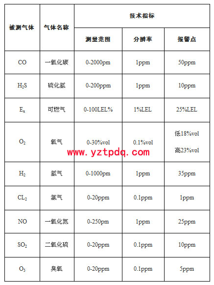 6、 響應時間: 氧氣<30S;一氧化碳<40s;可燃氣<20S;硫化氫 <40S (其他略)。