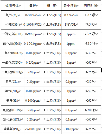 傳感器:氧氣及有毒氣體為電化學型,可燃氣體為催化燃燒型