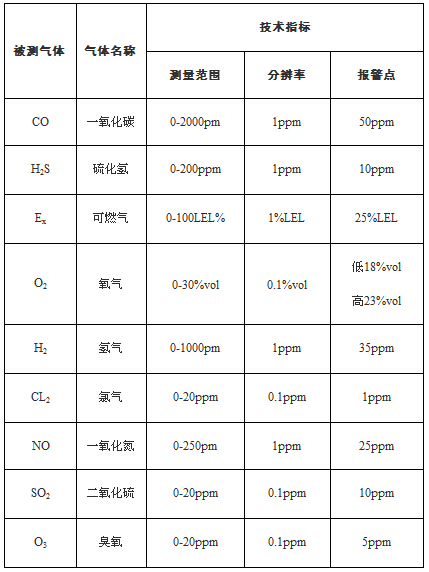 « 檢測氣體類型: 氧氣、可燃氣、一氧化碳等有毒害氣體