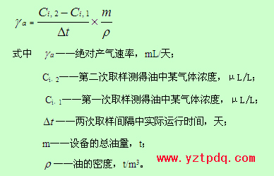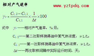 實踐證明,故障的發展過程是一個漸進的過程,僅由對油中溶解的氣體含量分析結果的絕對值很難確定故障的存在和嚴重程度。因此,為了及時發現雖未達到氣體含量的注意值,但卻有較快的增長速率的低能量潛伏性故障,還必須考慮故障部位的產氣速率。