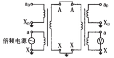 分級絕緣電壓互感器倍頻感應耐壓試驗過程的分析對二次繞組aX端施加倍頻耐壓,從輔助繞組aDXD端測量。對兩臺分級絕緣電壓互感器同時試驗時接線見圖3。從一臺電壓互感器二次繞組aX端施加倍頻耐壓,從另一臺電壓互感器二次繞組aX端測量。
