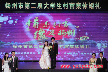 2011年10月18日,由揚州市委組織部、市婦聯、市廣電總臺、市園林管理局等單位聯合主辦的揚州市第二屆大學生村官集體婚禮在廣電中心演播廳隆重舉行,15對大學生村官“情系村官、緣定揚州”集體成親。市委常委、組織部部長丁純親臨現場,為大學生村官新人證婚。