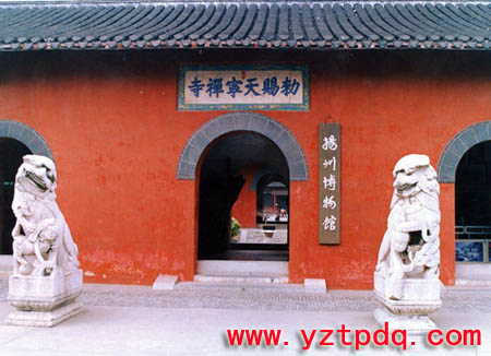 揚州天寧寺是清代揚州八大名剎之一。但它的歷史到底始于何時,眾說紛紜。最早的說法,是說唐代柳毅舍宅造寺,這個柳毅就是唐代傳奇《柳毅傳》中的主人公。柳毅是小說中的人物,我們也許不必深究。普通的傳說,是東晉時謝安捐出別墅建寺,以供尼泊爾僧人佛馱跋陀羅在此翻譯《華嚴經》。但是,對這一說法學者也有不同的意見。比較可靠的說法,應該是《寶佑惟揚志》所記載的,天寧寺始建于武則天證圣元年(695),以年號為名,最初稱為“證圣寺”。《寶佑惟揚志》是宋代編纂的揚州志書,與建寺時間較近,當時寺廟的名聲又很大,當不會有太大出入。北宋真宗大中祥符五年(1012),證圣寺改名“興教院”。宋徽宗政和二年(1112),全國重要州府均建“天寧寺”,所謂“建寺”也包括將原有的寺廟更名,于是賜予此寺“天寧禪寺”之名,從此沿襲至今。現在全國很多地方都有天寧寺,來歷就在于此。