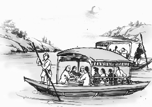 船宴,就是以船為設(shè)宴場(chǎng)所,把飲食與游樂巧妙地相結(jié)合的一種宴席形式。揚(yáng)州船宴,古而有之,可追溯到隋唐時(shí)期隋煬帝隨龍舟三幸江都,古時(shí)揚(yáng)州船宴有兩個(gè)顯著的特色,一是美女船娘,二是畫舫上不設(shè)鍋灶,而是把灶臺(tái)、茶器、酒壇以及各種烹調(diào)原料擺在隨行其后的酒船上,成為一“行廚”。