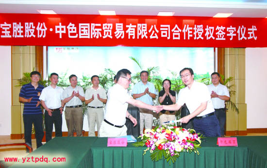 8月7日上午,寶勝股份和中色國際貿易有限公司合作授權簽字儀式在寶勝集團舉行,中國有色礦業集團有限公司副總經理、中色國際貿易有限公司董事長兼總經理李筱英,寶應縣委書記、縣人大常委會主任仲生,寶勝集團董事局主席楊澤元等出席簽字儀式。