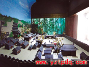 根據這一典故,在東關街歷史文化展示館內,便制作了一幅規模宏大的縮微“貴妃出嫁”場景。記者看到,場景中,不僅有抬花轎、抬彩禮的伴隨左右的丫鬟侍女,更有鳴鑼開道的,騎著高頭大馬的和扛著各種禮儀器的,中間還有三座牌樓,雖然人物只有10厘米左右高,但每個人物的造型,甚至面部表情都極為生動。