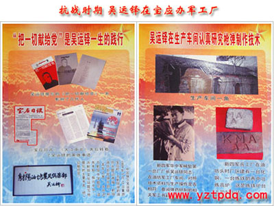 吳運鐸是在礦山上長大的。他從小隨父生活在江西萍鄉安源煤礦。為了謀生,進入湖北大冶煤礦做機電工。抗日戰爭爆發后,他來到皖南,報名參加了新四軍,原想上前線拿槍殺敵,卻被安排到軍司令部修械所制造槍炮子彈。看到所造的步槍和子彈送到前線去了,緩解了部隊作戰所需槍支彈藥緊張的矛盾,吳運鐸認識到造槍拿槍一樣是為革命,因而將修槍造彈視為自己的神圣使命。1939年5月18日,他光榮地加入了共產黨。在極端艱苦的斗爭環境中,吳運鐸始終抱著“不辱沒共產黨員這個崇高稱號”的想法,從不退縮,一往向前。在油坊頭籌建兵工廠初期,一無廠房,二無設備,在吳運鐸的帶領下,先借用群眾幾間草房干起來。為了解決設備問題,他們利用搜集的廢舊鋼材,制成各種機器數十臺。不到幾個月,就建成了鐵皮、鋼板結構的廠房200多間,在廠東南角建起了煉鐵爐,西北角建起了煉銅爐,占地200余畝,有工人200多人,干部50多人。每到夜晚工廠被汽油燈照得通明,兩座高爐的火光映紅夜空,兵工廠不僅生產子彈、榴彈、炮彈,還不斷研制新式武器,制造“52”小炮、“73”炮、“82”炮。吳運鐸在潛心試制各種殺傷力更強的武器過程中多次負傷。一次,在試爆炮彈時,一枚啞炮突然,吳運鐸被炸傷,左手被炸掉4個手指,左眼被炸傷,右膝蓋和腳趾被炸去一半,滿臉傷口流血不止。他被抬上卡車送醫院搶救療傷,昏迷了15天才恢復知覺,可他未等傷口痊愈,就提前出院,打著繃帶,回廠邊工作邊治療,又投入了軍工生產。