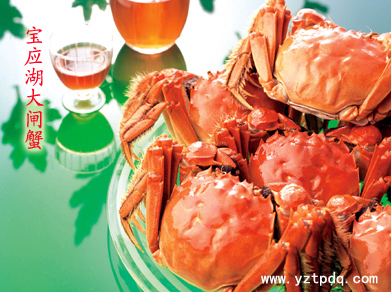寶應湖水質良好,生態(tài)優(yōu)越,盛產野鴨、莒蒿等多種野生動植物和水產品,其中鳥類就達147種之多,丹頂鶴、白天鵝等珍稀鳥類經常棲息于此。“湖水煮湖魚”,味道鮮美純正 。特別是寶應湖大閘蟹,青殼、白肚、金爪、黃毛、膏肥、黃豐、個大、味美,已獲得無公害品牌,與陽澄湖大閘蟹相媲美,遠銷廣東、香港等地,已注冊為國家商標。金秋時節(jié), 賞寶應湖風光,嘗寶應湖魚蟹,實乃人生一大快事。